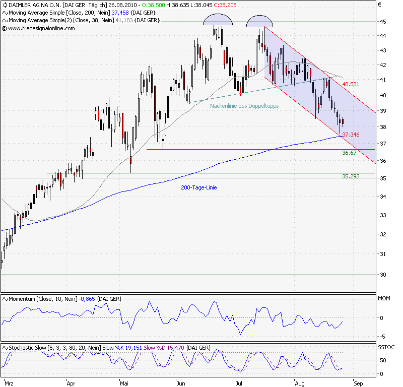 Doppeltop im Chart der Daimler Benz-Aktie (Quelle: www.euro-am-sonntag.de/www.tradesignalonline.de)